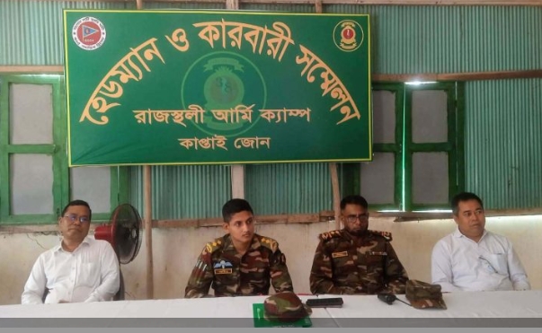 আব্দুর রাজ্জাক রাজস্থলী:- রাঙ্গমাটি জেলার কাপ্তাই জোনের জোন কমান্ডারের নির্দেশনায় এবং রাজস্থলী সাব-জোন কমান্ডারের তত্ত্বাবধানে রাজস্থলী আর্মি ক্যাম্পে হেডম্যান ও কারবারী সম্মেলন অনুষ্ঠিত হয়েছে।শনিবার (২৫ এপ্রিল) সকাল ১১টায় অনুষ্ঠিত এ সম্মেলনে সভাপতিত্ব করেন রাজস্থলী সাব-জোন কমান্ডার লেফটেন্যান্ট আহসান হাবীব আবীর। সম্মেলনটি নিয়মিত মাসিক কার্যক্রমের অংশ হিসেবে আয়োজন করা হয়। সাব-জোন কমান্ডার স্থানীয় হেডম্যান ও কারবারীদের সাথে মতবিনিময়ের মাধ্যমে তাদের বিভিন্ন সমস্যা, প্রয়োজন ও সম্ভাবনা সম্পর্কে অবগত হন।সভাপতির বক্তব্যে লে. আহসান হাবীব আবীর বলেন, রণজয়ী আটত্রিশ দায়িত্বভার গ্রহণের পর থেকে অত্যন্ত নিষ্ঠা ও আন্তরিকতার সাথে এলাকায় কাজ করে যাচ্ছে। এই অঞ্চলে দায়িত্ব পালন করতে পেরে তিনি নিজেকে গর্বিত মনে করেন। তিনি আরও বলেন, পার্বত্য চট্টগ্রামে বাংলাদেশ সেনাবাহিনী দীর্ঘদিন ধরে নানা ঝুঁকি মোকাবিলা করে সফলতার সাথে কাজ করে যাচ্ছে এবং পিছিয়ে পড়া জনগোষ্ঠীর আর্থ-সামাজিক উন্নয়নে নিরলসভাবে অবদান রেখে চলেছে।তিনি বলেন, কাপ্তাই জোনের উদ্যোগে আয়োজিত এই সম্মেলনের মাধ্যমে স্থানীয় জনগণের সাথে আরও সুসম্পর্ক গড়ে তোলা এবং উন্নয়ন কার্যক্রমকে ত্বরান্বিত করার সুযোগ সৃষ্টি হয়েছে।তিনি আরও উল্লেখ করেন, “আপনাদের সহযোগিতা নিয়ে আমরা একসাথে কাজ করতে চাই। দুর্গম এলাকার মানুষ যারা এখনো আধুনিকতার ছোঁয়া পায়নি, তাদেরকে একবিংশ শতাব্দীর আধুনিক সুবিধার আওতায় আনার জন্য আমরা কাজ করছি। ভবিষ্যতেও এই উন্নয়নের ধারা অব্যাহত থাকবে।” এলাকার শান্তি ও স্থিতিশীলতা বজায় রাখতে সকলকে ঐক্যবদ্ধ থাকার আহ্বান জানান তিনি।সম্মেলনে অন্যান্যদের মধ্যে উপস্থিত ছিলেন রাজস্থলী সাব-জোনের জেসিও মিজানুর রহমান, ১ নং ঘিলাছড়ি ইউনিয়ন পরিষদের চেয়ারম্যান রবার্ট ত্রিপুরা, ২ নং গাইন্দ্যা ইউনিয়ন পরিষদের চেয়ারম্যান পুচিংমং মারমা, সাবেক উপজেলা চেয়ারম্যানসহ বিভিন্ন মৌজা থেকে আগত ৪ জন মেম্বার, ৫ জন হেডম্যান ও ৫৩ জন কারবারী। এছাড়াও গণমাধ্যমকর্মীরা উপস্থিত ছিলেন–জেএসকেপি